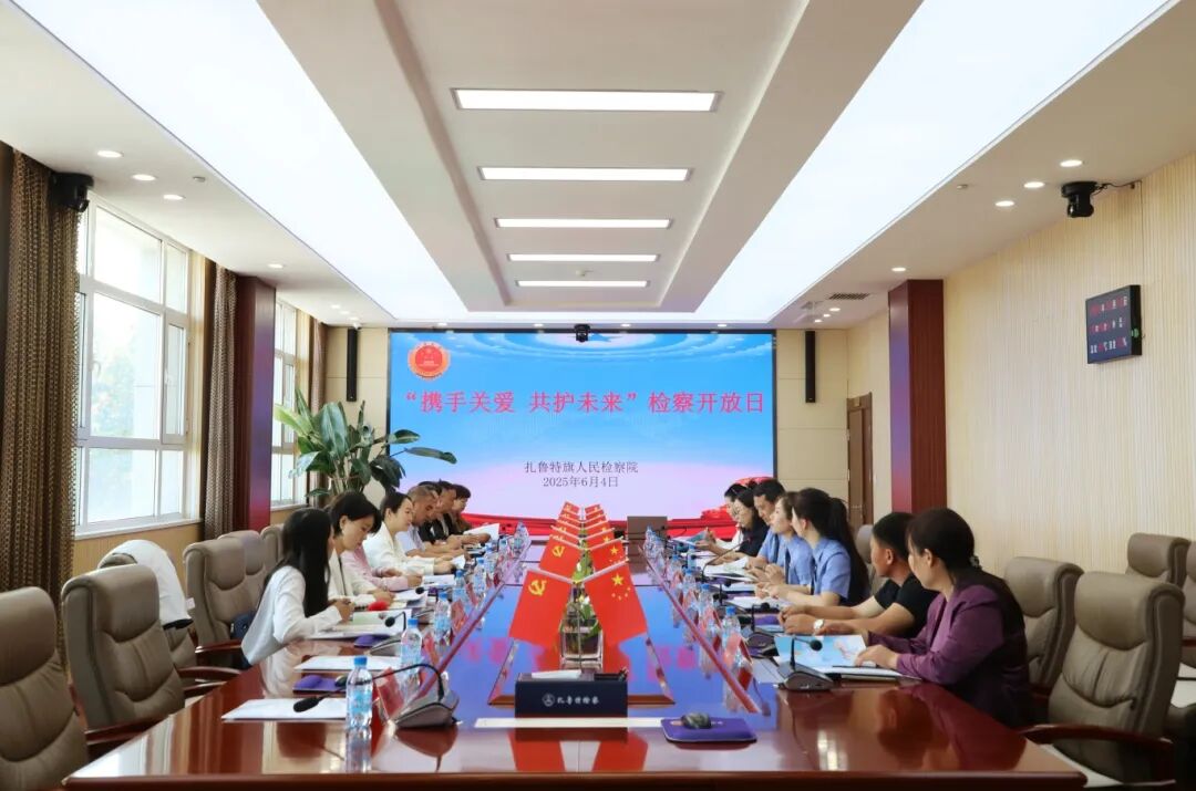 为进一步深化未成年人检察工作,强化与社会各界的沟通协作,凝聚未成年人保护合力,6月4日,扎鲁特旗检察院举办了以“携手关爱,共护未来”为主题的开放日活动。此次活动邀请了旗人大代表、旗政协委员、旗关工委、旗妇联、旗团委等多部门代表以及家长代表参加此次检察开放日活动。