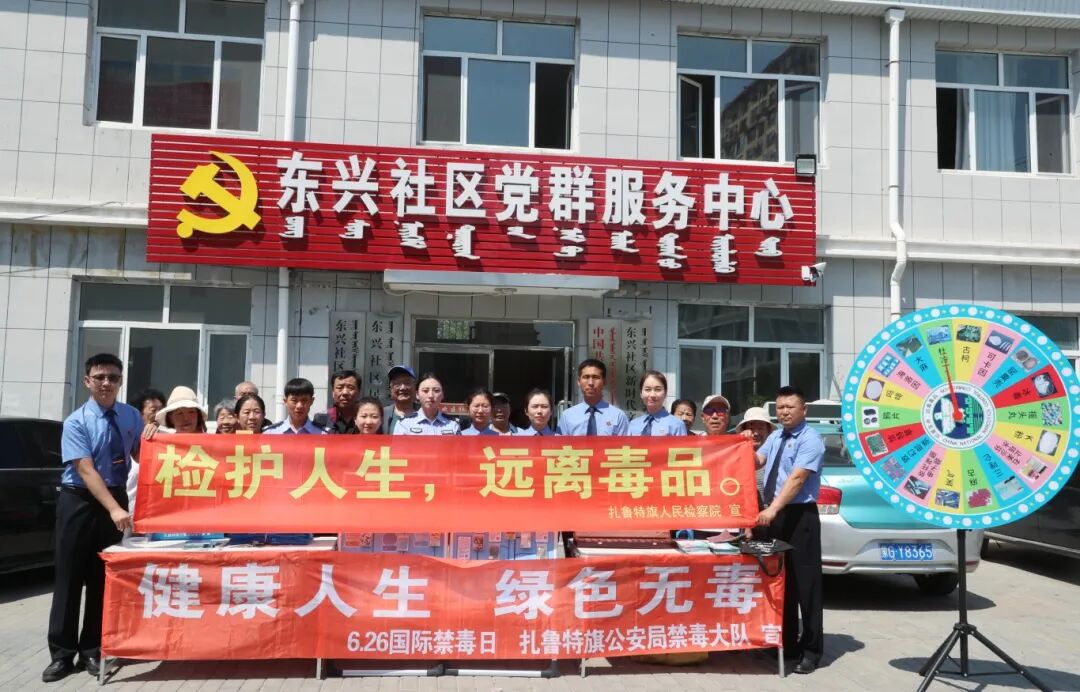 为深入推进新时代全民禁毒工作,全面提升群众的识毒、防毒、禁毒意识,营造全民参与禁毒的良好法治氛围。近日,扎鲁特旗检察院第一党小组、第三党小组联合扎鲁特旗公安局禁毒大队前往东兴社区开展“健康人生,绿色无毒”为主题的禁毒普法活动。