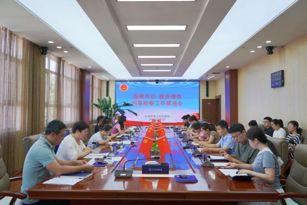 为全面落实院党组工作部署,系统总结2025年上半年刑事检察工作成效,精准查摆剖析短板弱项,科学规划部署下半年重点任务,扎鲁特旗检察院刑事检察部门于近日组织召开刑事检察工作推进会。