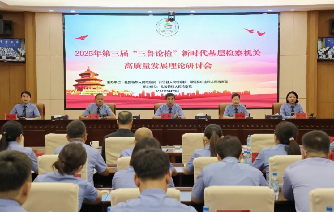 为加强检察理论研究,提高调研实效,提升检察素质,推动检察工作高质量发展,2025年9月23日,扎鲁特旗检察院、开鲁县检察院、阿鲁科尔沁旗检察院共同举办了以“新时代基层检察机关高质量发展”为主题的第三届“三鲁论检”检察理论研讨会。