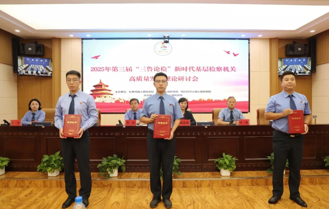会上,由扎鲁特旗检察院副检察长项秀华宣读“三鲁论检”检察理论研讨会评奖情况的通报,并宣布获奖名单。会议共选取了12篇优秀文章进行交流评析并编辑成册,评选出优秀论文一等奖3篇,二等奖3篇,三等奖3篇,优秀奖3篇,由与会领导分别颁奖。