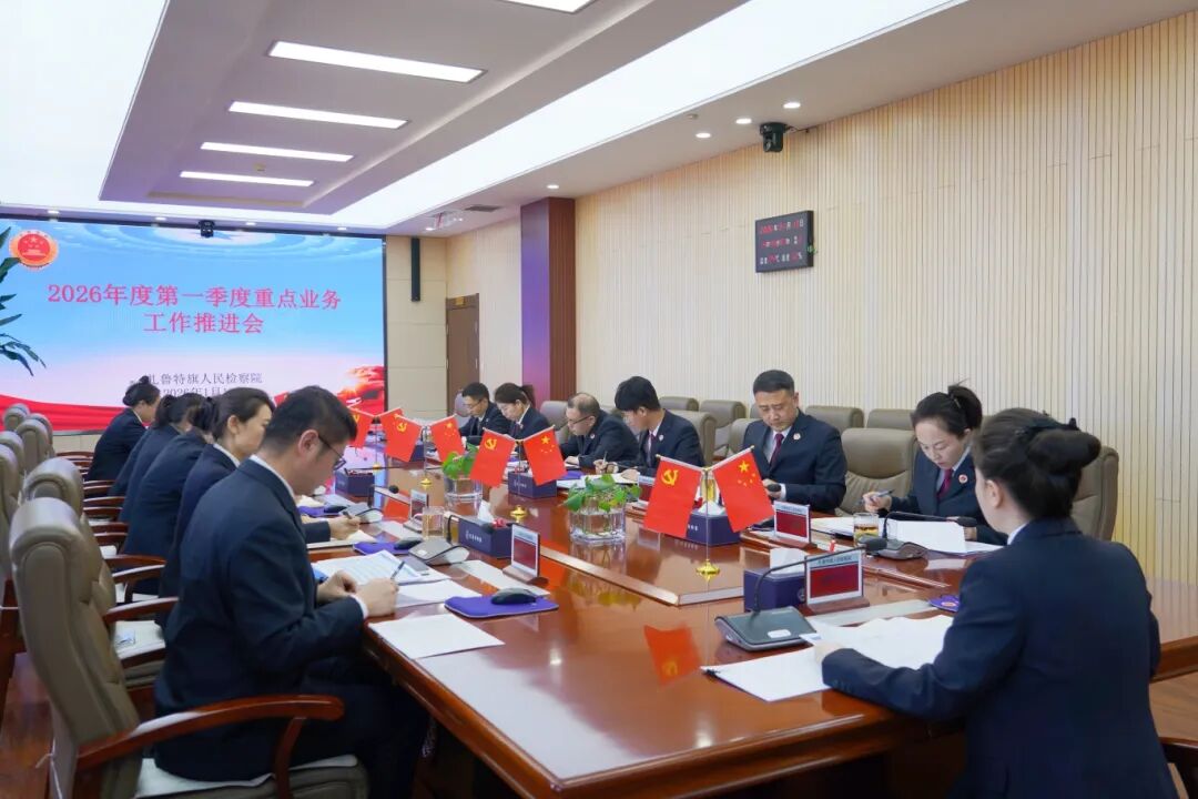1月13日,扎鲁特旗检察院召开2026年第一季度重点业务工作推进会,围绕业务质效、检察侦查、数字检察等方面工作部署第一季度工作任务和目标。业务部门分管领导及环节正副职参加会议,党组书记、检察长曲叶红主持会议。