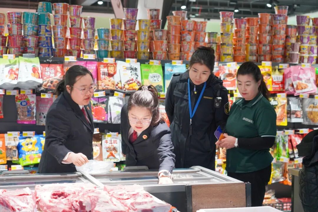 检察官与市场监督管理局工作人员深入大型超市、商店、饭店、居民小区周边肉类经营等场所,在了解日常经营情况的同时,重点聚焦粮油米面、肉禽蛋奶、散装食品、酒水饮料、各类糕点等节日重点消费食品,除严格核查食品经营资质外,还重点查验肉类及相关制品的动物检疫检验证明、肉品合格证明、进货台账及索证索票制度落实情况;着重检查散装食品标签标识是否规范和完整、是否明码标价;仔细查看餐饮单位后厨,检查食材储存、加工制作、餐具消毒及从业人员健康管理等情况。
