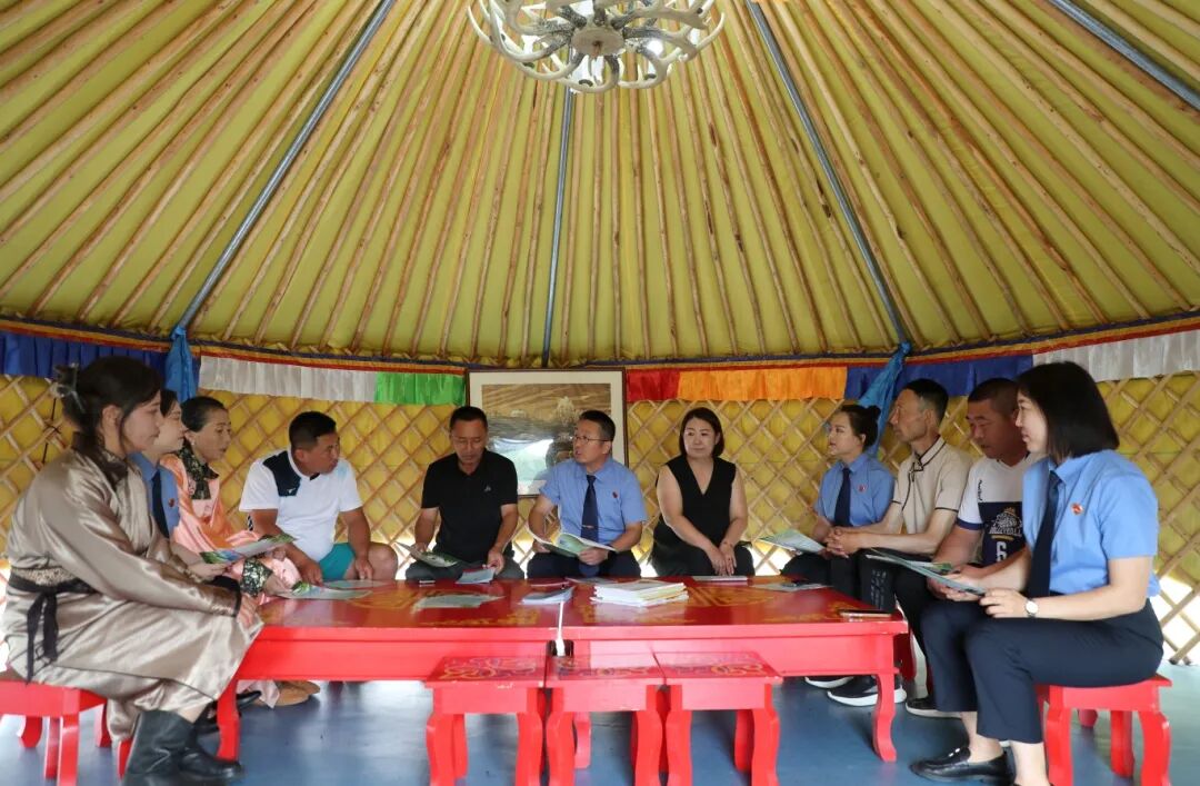 打破部门壁垒,整合资源优势,推动党小组活动与检察业务、基层治理深度衔接。聚焦群众需求,联合其他党小组深入6个苏木镇10个嘎查村、社区及3所学校、2家企业,开展普法宣传、民意收集、实事办理等活动,累计联系群众200余人次,回应和解答群众涉诉涉法问题5件。联动旗委政法委、团旗委等部门,开展“青年普法志愿者法治文化基层行”等特色活动,以多维度协作提升工作实效,彰显党建引领下的检察担当。